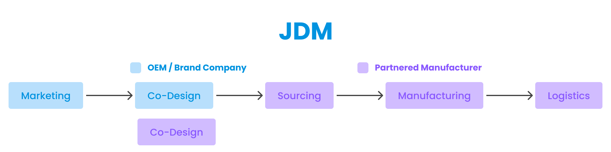 A Joint Design Manufacturer (JDM) works almost like a co-parent in the product creation process. Unlike CDM, where the OEM leads the design and the CM refines it, in JDM both sides collaborate from the ground up. The OEM and JDM share responsibility for ideation, design, and sometimes even IP ownership. This partnership often reduces time-to-market and allows access to the JDM's specialized R&D, but it comes with less exclusivity and more shared control. JDM model also lives in a middle ground where manufacturing lines can either be co-owned or hosted by one party. The details are more nuanced and often polished during the contracting stage.